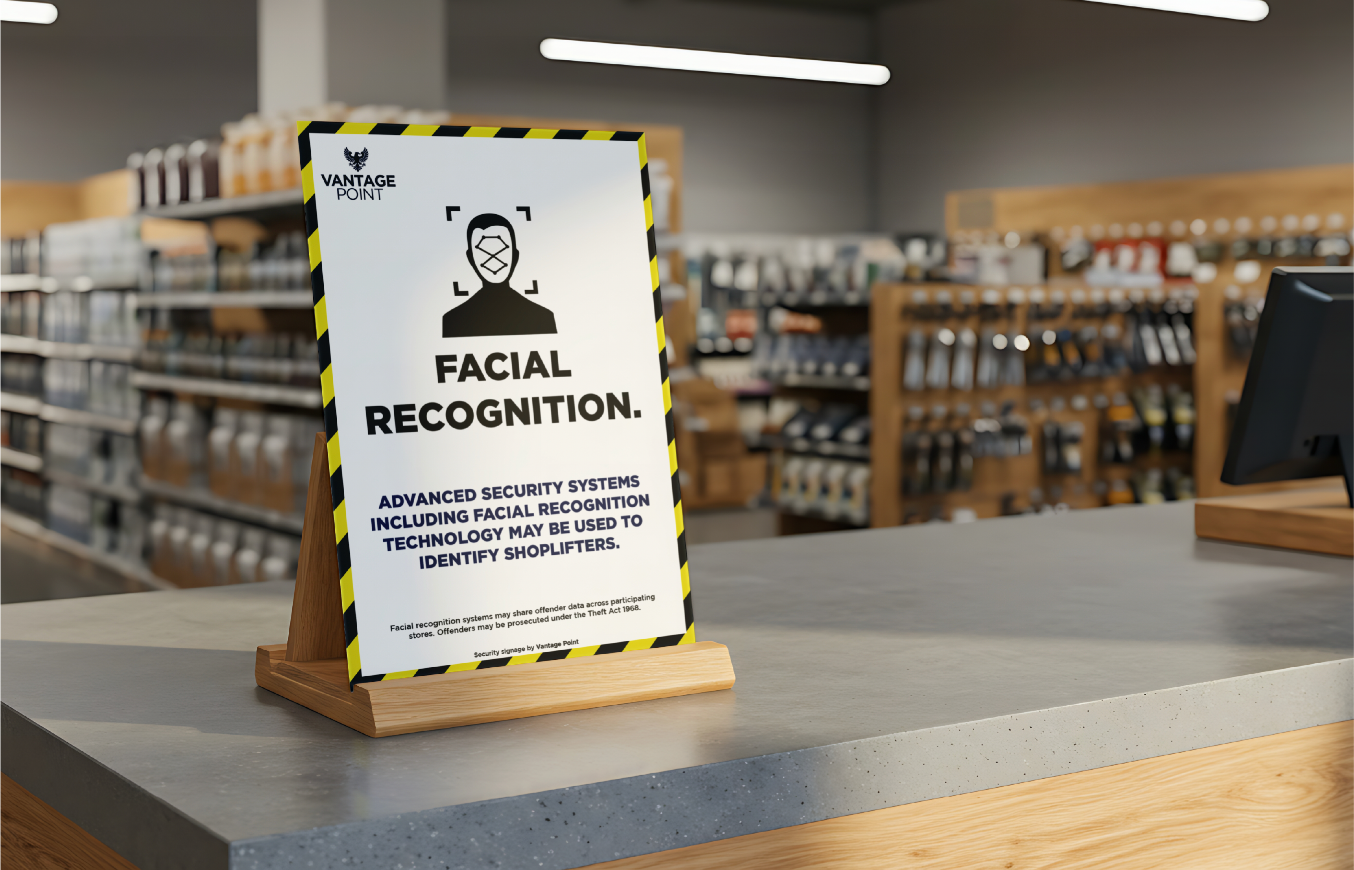 Vantage Point is a retail security deterrent signage system developed by Vantage Signs and Graphics, a UK signage manufacturer based in York.